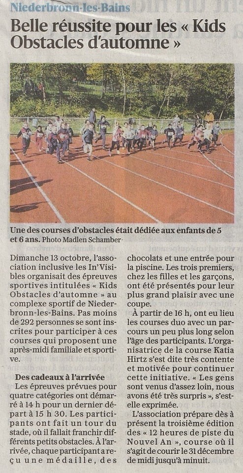 🎁 Association « Les -In-Visibles» offrira à chaque inscrit des « Kids Obstacles d’Automne » la possibilité de télécharger ses photos, en format HD, via le site de « Pascal HIRTZ photographe »