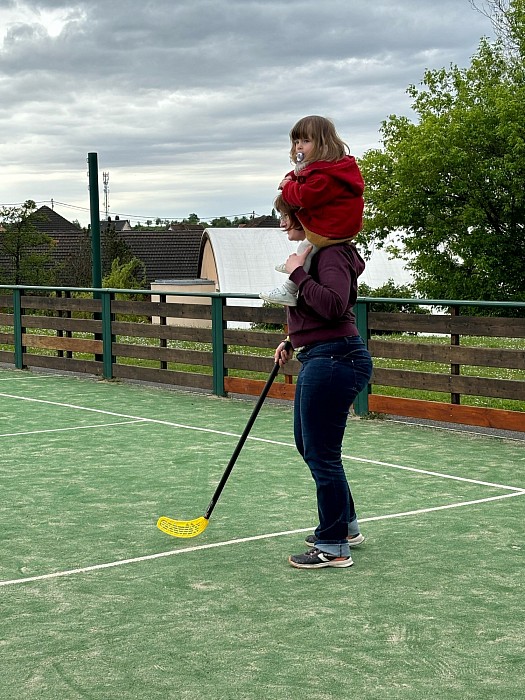 On démarre donc le « hockey », que nous pratiquons le dimanche matin sur le city stade de Niederbronn-les-Bains 🏒