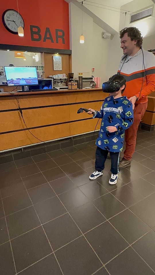 De la VR (casque de réalité virtuelle) dans le hall de l’établissement, qui permettait de visiter Strasbourg, en version Minecraft !