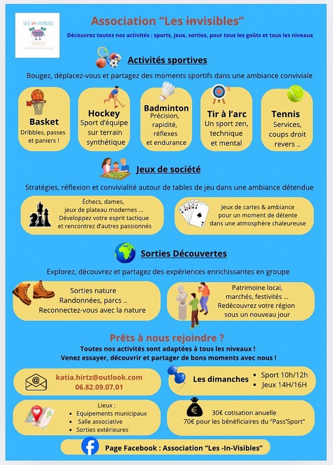🏋️♀️ Les (in)visibles seront ravis de vous présenter les activités sportives proposées par l’association tous les dimanches